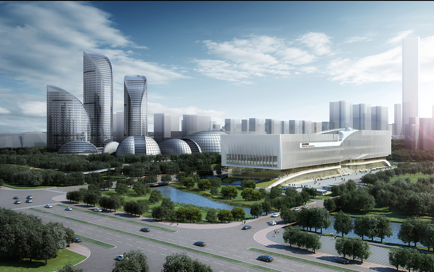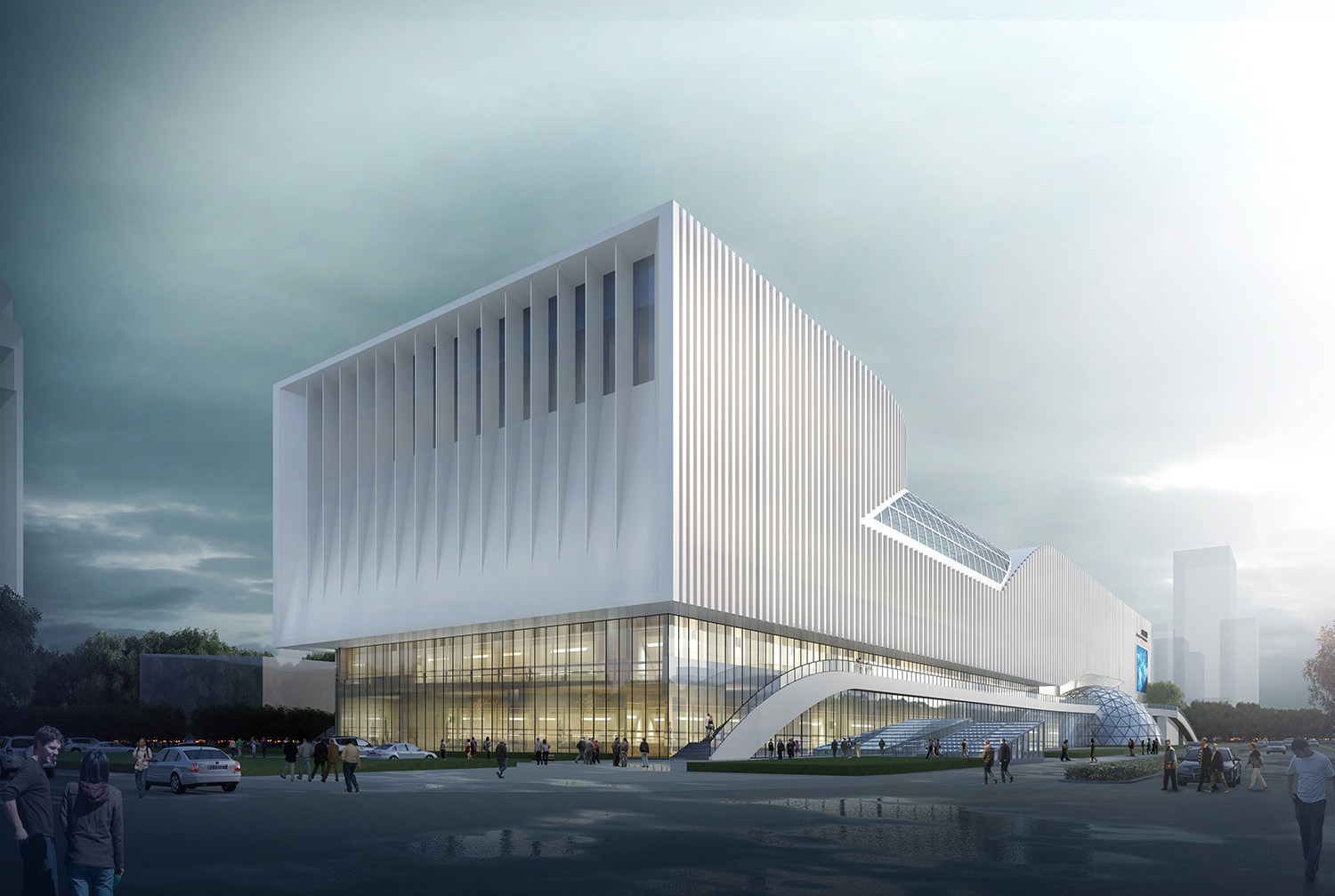 山東省科技館新館建筑將數學符號“∞”嵌入形體,意即"無限",隱喻隨著社會進步,科技領域無限未知、無限發展并有無限可能。項目整個形體簡練、抽象、完整,既充盈著科學氣質,又流露出海岱文化中的山水意蘊,提出了"山海無限"的設計理念,含蓄表達了齊魯文化中的厚重與靈動,力求建筑與自然交融,科技與生活交融,使文化、自然、生活融為一體。