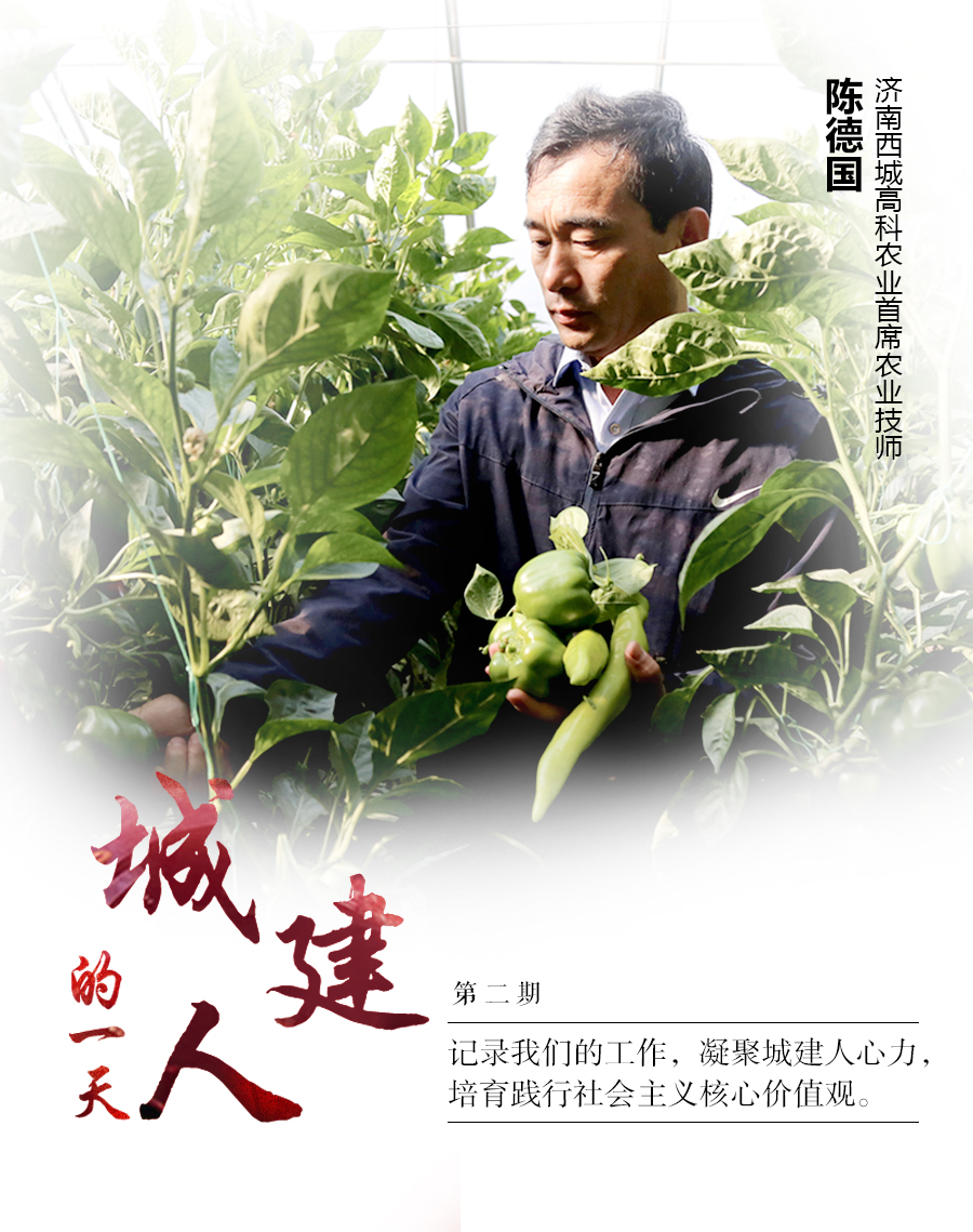 陳德國,現(xiàn)任濟南城市建設(shè)集團所屬濟南西城高科農(nóng)業(yè)發(fā)展有限公司首席農(nóng)業(yè)技師。2000年,帶頭建起商河縣玉皇廟鎮(zhèn)第一批高溫大棚。2011年,在濟南市菜椒評比大賽獲得菜椒王特等獎。2014年7月進(jìn)入高科公司工作,歷任技術(shù)員、園區(qū)副主任,生產(chǎn)部技術(shù)總監(jiān)。2017年獲得濟南市勞動模范稱號,2018年獲得山東省勞動模范稱號。