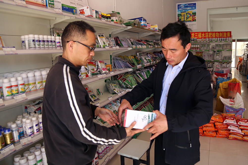 15:00陳德國前往黃瓜棚與西紅柿棚給種植戶送中午買的藥物和肥料。“買的都是進(jìn)口特效藥,質(zhì)量是一個公司的名譽問題,大家一定抓好了別掉以輕心。”陳德國說道。