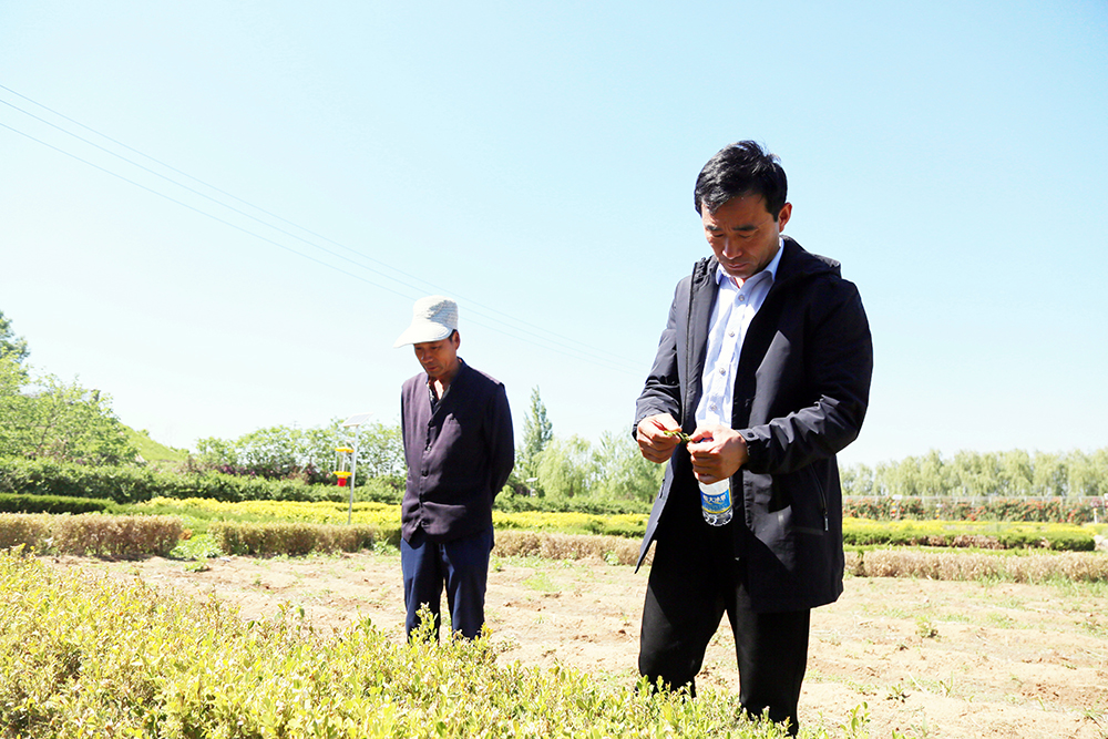 14:00去往連棟溫室的路上,陳德國碰到了園林區(qū)的一位同事,向他反映了部分苗木的病蟲害問題,陳德國隨即與同事實地察看了病蟲害情況,制定了應(yīng)對方案。防患于未然,哪怕碰到一點小問題也不大意拖延,這是陳德國的一貫作風(fēng)。