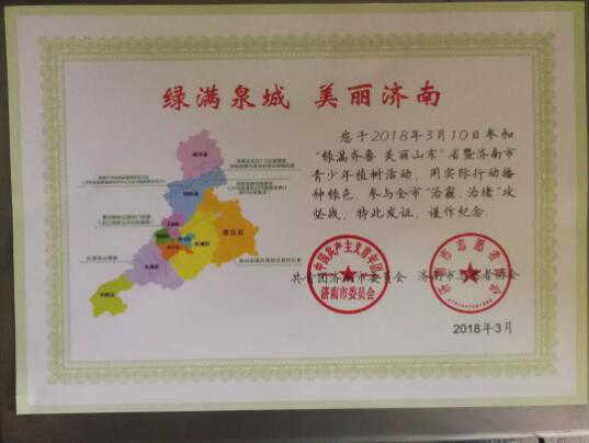 3月10日上午,團省委、團市委聯合愛濟南為助力濟南新舊動能轉換先行區綠色生態建設,開展2018年“綠滿齊魯,美麗山東”暨濟南市青少年植樹活動。本次活動植樹場地位于濟陽縣崔寨鎮邢家渡干渠前街段,方圓約2公里。資產運營公司積極動員,組織公司青年團員參與本次活動。