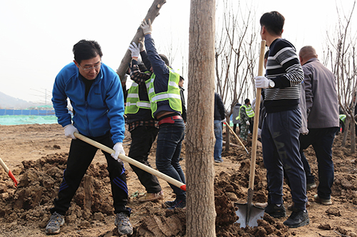 在第40個植樹節來臨之際,3月10日上午,濟南城市建設集團組織干部職工在華山生態濕地公園園林一期B區開展義務植樹活動。集團黨委書記、董事長李國祥,集團黨委副書記、總經理李培杰等集團領導及150多名干部職工參加了植樹活動,共栽種欒樹、白臘樹、櫻花樹、五角楓等各類苗木600余棵。