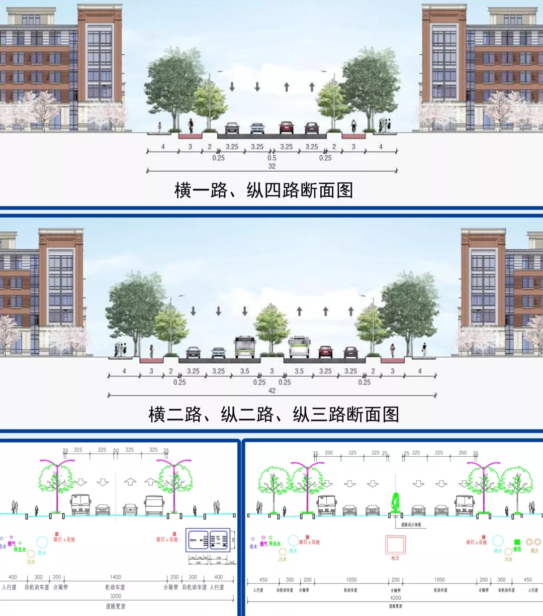 建設內容:引爆區“兩橫三縱”5條市政道路和啟動區6條市政道路約21公里。引爆區道路約11公里,其中橫一路寬32米,長度約為3.0公里,橫二路寬42米,長度約為4.0公里,縱二路寬42米,長度約為1.2公里,縱三路寬42米,長度約為1.3公里,縱四路寬32米,長度約為1.5公里。啟動區6條道路,總長度約9.8公里,由綠地控股集團結合國際會展中心項目同步建設。