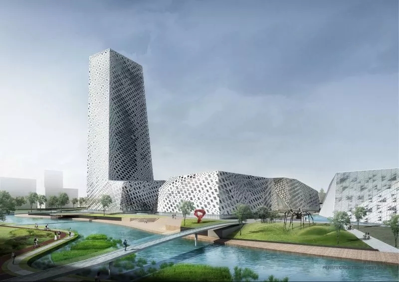 三館二期項目北臨興福寺路,東至臘山河東路,西至臘山河西路,南接“一院三館”,北鄰印象濟南泉世界。項目規劃總用地范圍4.65公頃,總建筑面積21.5萬㎡,裙房6層,超高層塔樓34層。其中,地上建筑面積約15萬㎡,地下建筑面積約6.5萬㎡,提供700余個車位。