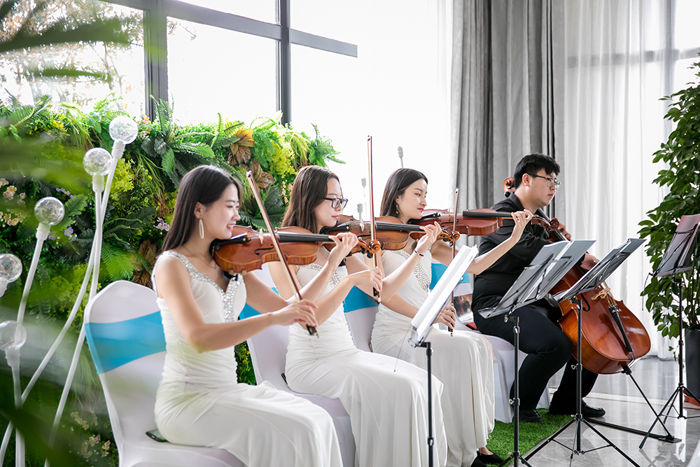以天鵝湖為創(chuàng)意源點的開場視頻,傳達了春風海岸對美好生活想象與期待。項目負責人介紹了春風海岸的小鎮(zhèn)規(guī)劃,描繪著專屬于海岸小鎮(zhèn)的美好生活。活動現(xiàn)場還為來賓們專門定制了小提琴雅樂之會,在松林海洋的環(huán)抱之中,感受濱海小鎮(zhèn)愜意時光。