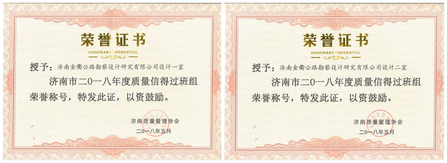 近日,濟南質量管理協會組織召開了2018年度全市群眾性質量管理活動經驗交流會,表彰群眾性質量管理活動中涌現出的優秀QC小組、質量信得過班組、先進工作者及優秀QC成果。金衢公司成立“金設”QC小組參與評選,申報的多個課題受到表彰:其中“提高粒料樁的成樁率”課題榮獲“濟南市2018年度質量管理成果”一等獎;“提高路面結構內部排水效率”課題榮獲“濟南市2018年度質量管理成果”二等獎;“公路路基滑坡治理研究”、“提高公路設計工作的效率”、“有效防止小箱梁支座脫空現象”、“提高后期服務滿意率”四個課題分別榮獲“濟南市2018年度質量管理成果”三等獎;同時,金衢公司設計一室、設計二室被授予“濟南市2018年度質量信得過班組”榮譽稱號,劉騰、王敏、張偉偉三人被授予“2018年濟南市優秀質量管理工作者稱號”。