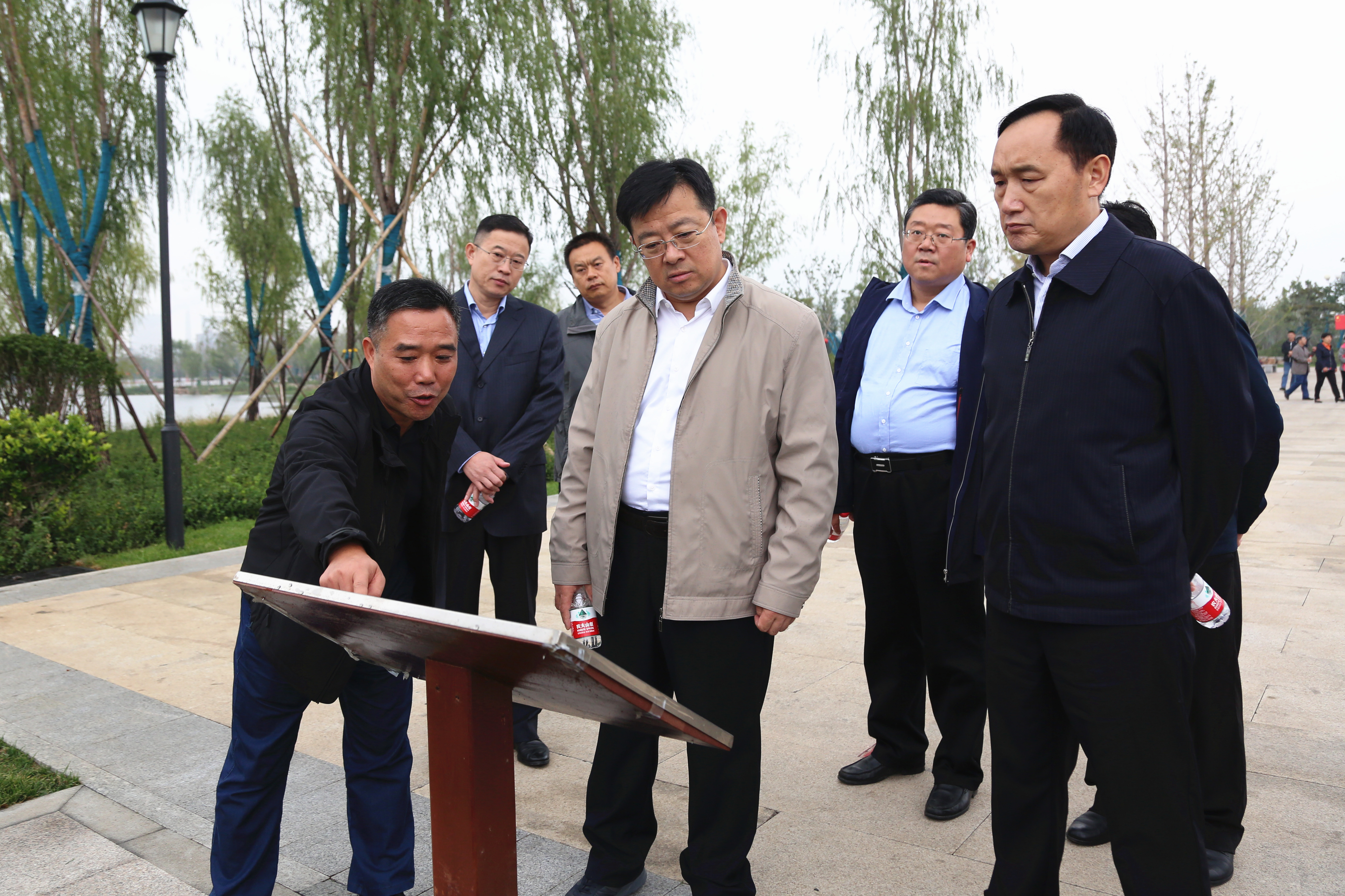 調(diào)研過程中,程德智實地察看了華山歷史文化濕地公園的建設(shè)和運營管理情況,聽取了相關(guān)負責同志關(guān)于園區(qū)建設(shè)管理、后續(xù)配套提升等方面的工作匯報。