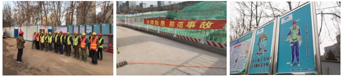 面對嚴峻的控制質量環境,建設單位不斷加強對現場安全文明施工的管理,所有車輛駛出前清洗、揚塵監控數據聯動。施工現場24不間斷灑水降塵。在項目現場,建立了安全生產管理體系,每日在進場前組織工人進行安全班前教育,比對示范圖“照鏡子、正衣冠”,把好安全生產質量關。