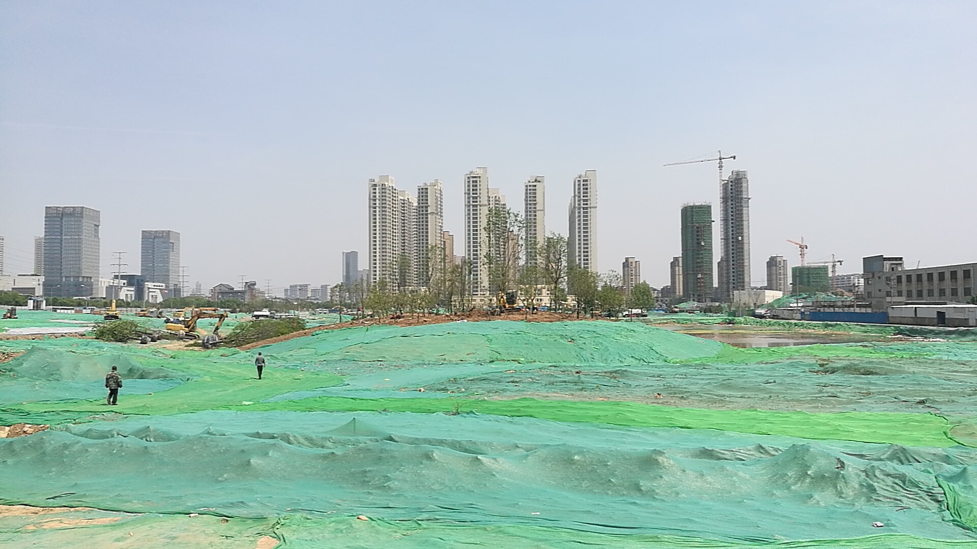 云錦湖公園的綠化包含苗木種植、石材鋪裝、雕塑、亭廊、廣場、噴泉、棧道、游步路等工程。沿著公園西北部的波浪廣場進入內部,園區內部綠化效果初顯,多臺挖掘機正在湖區部分挖運土石方,隨著湖區面積的擴大,注水工作也將逐步展開。同時,園區4米游步路正在全面鋪設過程中,屆時可通過游步路進行環湖觀賞游覽。