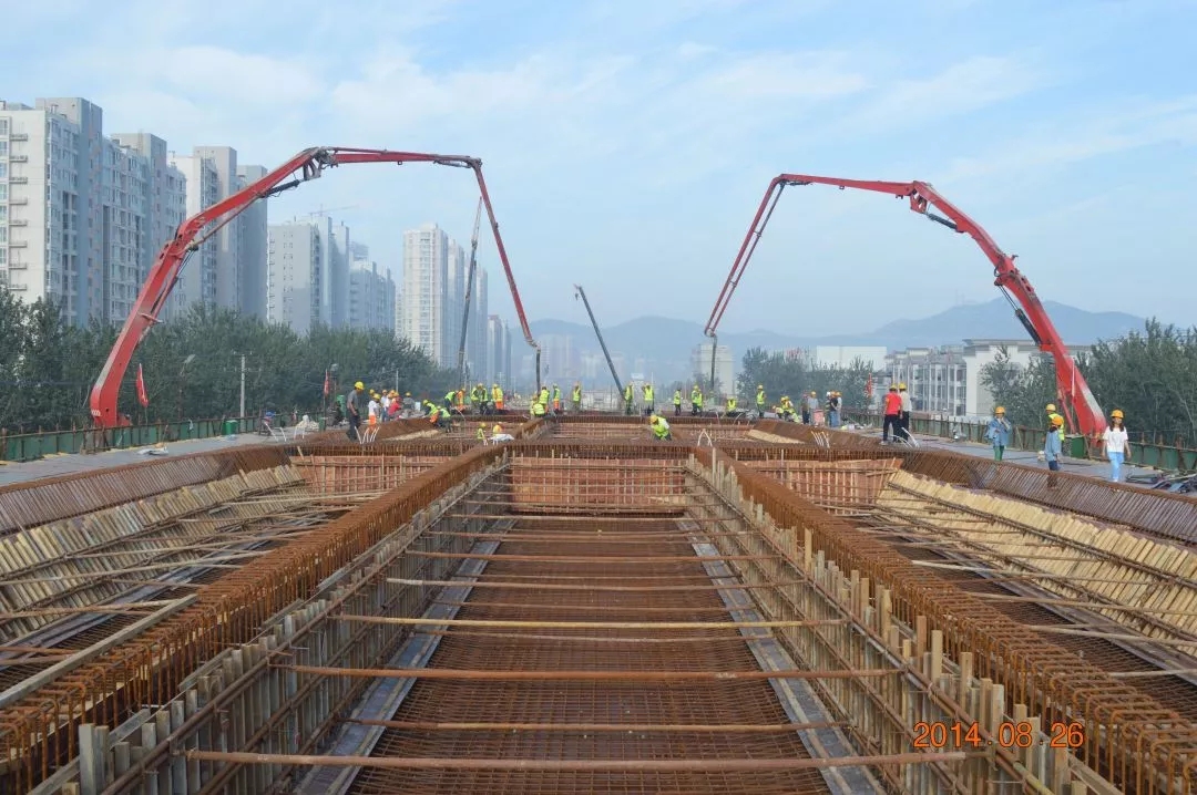 濟(jì)南市二環(huán)南路建設(shè)工程(西段)第一標(biāo)段由濟(jì)南黃河路橋建設(shè)集團(tuán)有限公司承建,該標(biāo)段西起G104,東至石房峪隧道西口,地面道路全長(zhǎng)1400米,規(guī)劃紅線寬60-80米,小北山石方開挖100萬(wàn)立方米,快速路長(zhǎng)700米、寬度26.5米,跨線橋及引道長(zhǎng)500米,路塹長(zhǎng)200米,同步建設(shè)雨、污水管線、電力、照明、通信、給水、燃?xì)狻崃Φ仁姓芫€及配套設(shè)施。工程設(shè)計(jì)融入海綿城市理念,采用“凈、蓄、滯、滲、排、用”等措施,提高雨水利用率,減少城市內(nèi)澇發(fā)生,橋面鋪裝采用瀝青砂防水調(diào)平層及兩層SMA提高抗車轍能力。