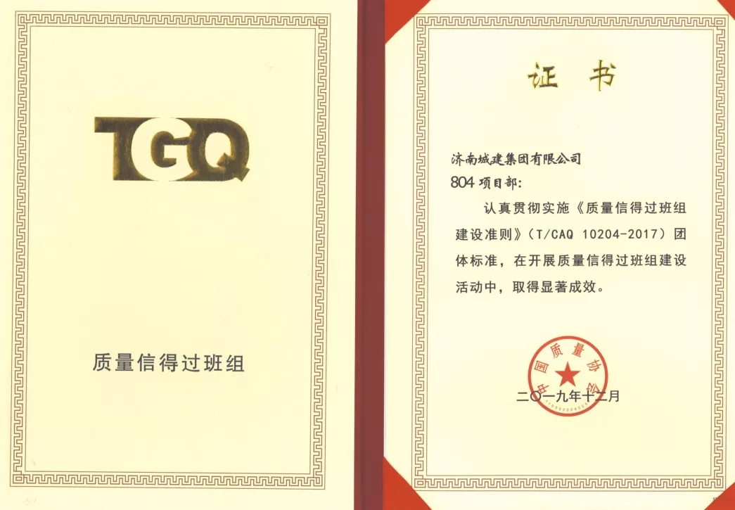 近日,2019年度中國質量協會質量信得過班組建設活動正式落幕,濟南城市建設集團所屬濟南城建集團有限公司、濟南黃河路橋建設集團有限公司各有三個班組榜上有名,榮獲“全國質量信得過班組”榮譽稱號。