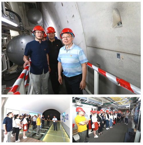 第三站參觀濟南黃河隧道施工現場,通過現場講解和視頻短片介紹,黨員同志初步了解了濟南黃河隧道項目建設總體情況及大型盾構機設備工作原理,并進入盾構機掘進現場體驗查看。