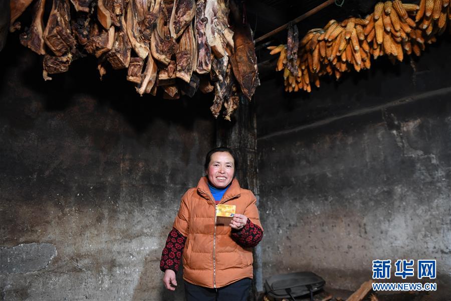 湖南龍山縣翻身村村民李紅云在展示自家的儲蓄卡(3月10日攝)。新華社記者薛宇舸攝
