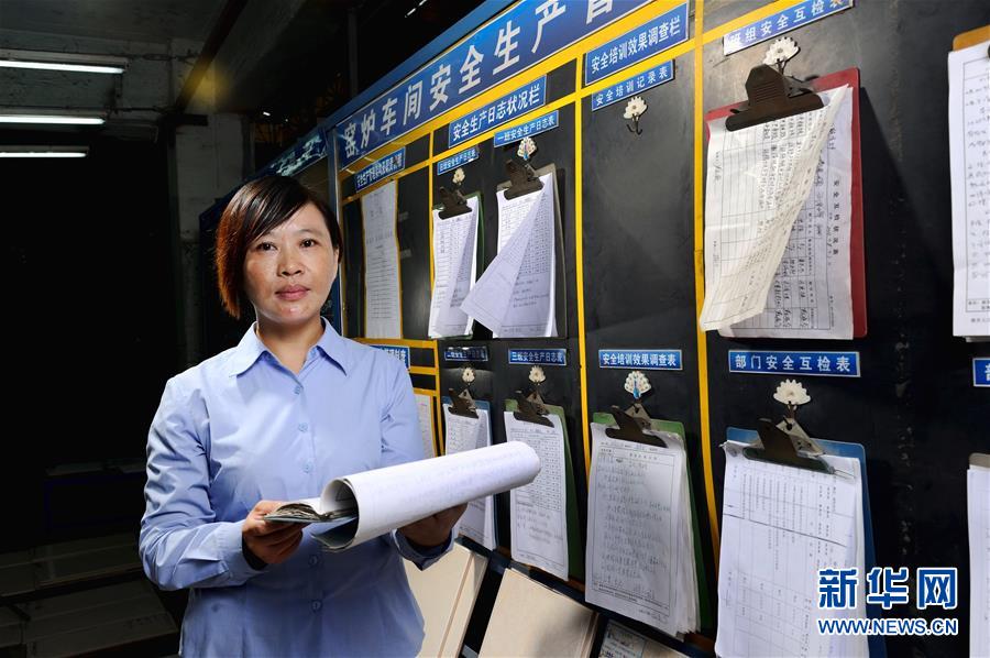 首批農民工全國人大代表之一胡小燕在曾經工作過的陶瓷廠檢查職工權益保護工作(2013年11月5日攝)。新華社記者劉大偉攝