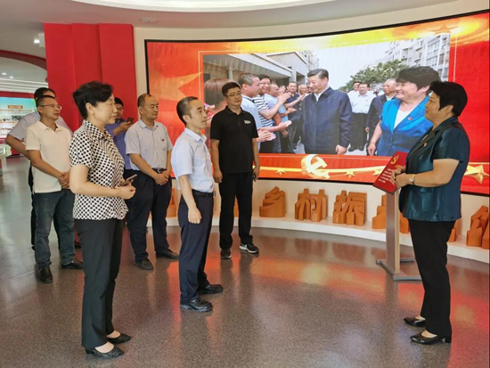 在三澗溪村,工作人員帶領(lǐng)大家重走習(xí)近平總書記的考察足跡。在村委會黨群服務(wù)中心,深入了解了三澗溪村的成長史、黨組織的發(fā)展歷程、黨組織建設(shè)經(jīng)驗和先進做法,以及“四鄰聯(lián)動”等為民服務(wù)體系。在鄉(xiāng)村振興主題展館,工作人員為大家講解了習(xí)近平總書記親臨三澗溪村視察指導(dǎo)的有關(guān)情形,并結(jié)合實物、圖片、視頻、展板等載體講述了三澗溪黨委不忘初心,牢記使命,擔(dān)當(dāng)作為,團結(jié)帶領(lǐng)村民脫貧致富的奮斗歷程。期間,工作組與三澗溪村黨委書記高淑貞就黨建引領(lǐng)、鄉(xiāng)村振興等方面進行了暢談交流,參觀結(jié)束,全體人員在黨旗前重溫了入黨誓詞。