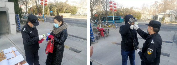 金宇公司物業(yè)分公司通過在門口設(shè)置體溫測(cè)量點(diǎn),嚴(yán)格落實(shí)小區(qū)入口登記和體溫監(jiān)測(cè)制度。安保人員在門口24小時(shí)值守,進(jìn)入園區(qū)需持疫情期間臨時(shí)通行證,嚴(yán)格執(zhí)行“三不準(zhǔn)”:不戴口罩者一律不準(zhǔn)進(jìn)入辦公區(qū);不接受體溫量測(cè)者一律不準(zhǔn)進(jìn)入辦公區(qū);測(cè)量體溫高于37.3℃(含)者一律不準(zhǔn)進(jìn)入辦公區(qū)。