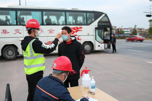 為緩解當前復工用工緊張局面,確保工人安心返崗,濟南城建集團第二分公司金華項目部決定采用包車接工人返金華。通過“點對點一站式直達”方式跨省包車,保障新進員工安全到崗,所有務工人員出示身份證明、健康登記證明和返崗通知,并按照一人一排一座的間距要求就座。同時,項目部接待、住宿、消殺等準備工作已按部就班、有條不紊的進行,2月25日,第一批四川省廣安市鄰水縣的20位工友,乘坐由四川省廣安市鄰水縣出發的大巴抵達金義東市域軌道交通項目土建11標項目部。