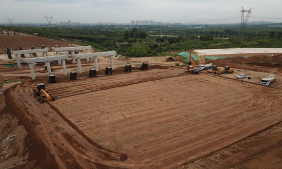 大東環(huán)二標(biāo)段路基總挖方223.77萬(wàn)方,總填方309.7萬(wàn)方。為了確保項(xiàng)目建設(shè)的順利進(jìn)行,項(xiàng)目部及早安排部署,從2018年底正式開(kāi)展路基施工,從測(cè)量放樣、原地面清表、挖土方、填土方等各個(gè)環(huán)節(jié)都做到有條不紊、有序推進(jìn),積極利用有利天氣,挖掘機(jī)、推土機(jī)、壓路機(jī)等來(lái)回穿梭轟鳴,并進(jìn)行積極協(xié)調(diào),確保各個(gè)工作面都有機(jī)械運(yùn)轉(zhuǎn),大大提高了施工速度,同時(shí)進(jìn)行細(xì)節(jié)把控,路基邊部采用液壓夯補(bǔ)強(qiáng)、搭接部位鋪設(shè)土工格柵、軟土地基采取摻灰處理等,推進(jìn)進(jìn)度同時(shí)保證了工程質(zhì)量。10月7日完成全部路基施工任務(wù)。