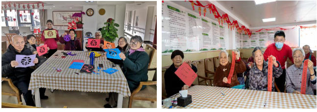 節日期間,金齡健康的員工們以堅守崗位,以長者的需求為重,每一天都安排了豐富多彩的娛樂活動。有泥塑、剪紙、寫春聯等手工活動;也有擊鼓傳花、套圈、紅歌KTV等參與性活動。公司也對在崗員工表達了關心和祝福,準備了零食福袋和橘子等慰問品,希望他們在照顧好入住長者的同時也能照顧好自己,讓歡聲笑語包圍充滿園區,共同度過一個熱鬧祥和的新年。