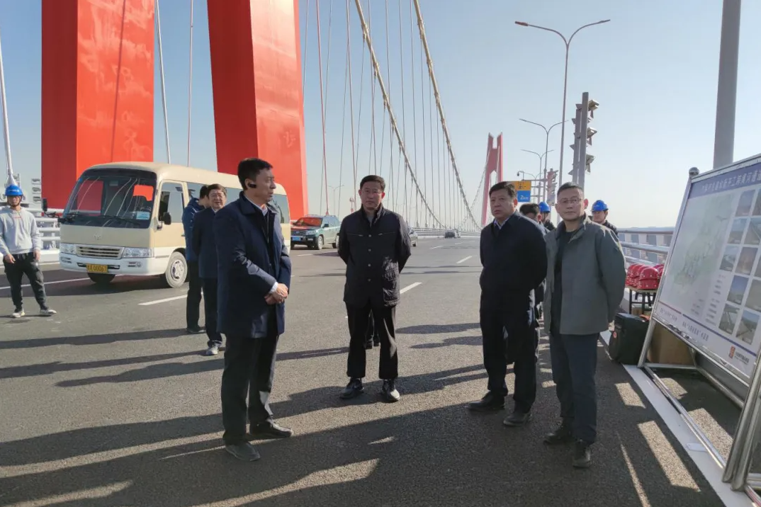 12月4日上午,濟(jì)南市城鄉(xiāng)交通運(yùn)輸局黨組書記曹殿軍一行到濟(jì)南黃河鳳凰大橋調(diào)研項(xiàng)目建設(shè)情況,市交通運(yùn)輸事業(yè)發(fā)展中心主任楊峰陪同調(diào)研。建設(shè)集團(tuán)黨委書記、董事長張海平,副總經(jīng)理許為民參加活動(dòng)。