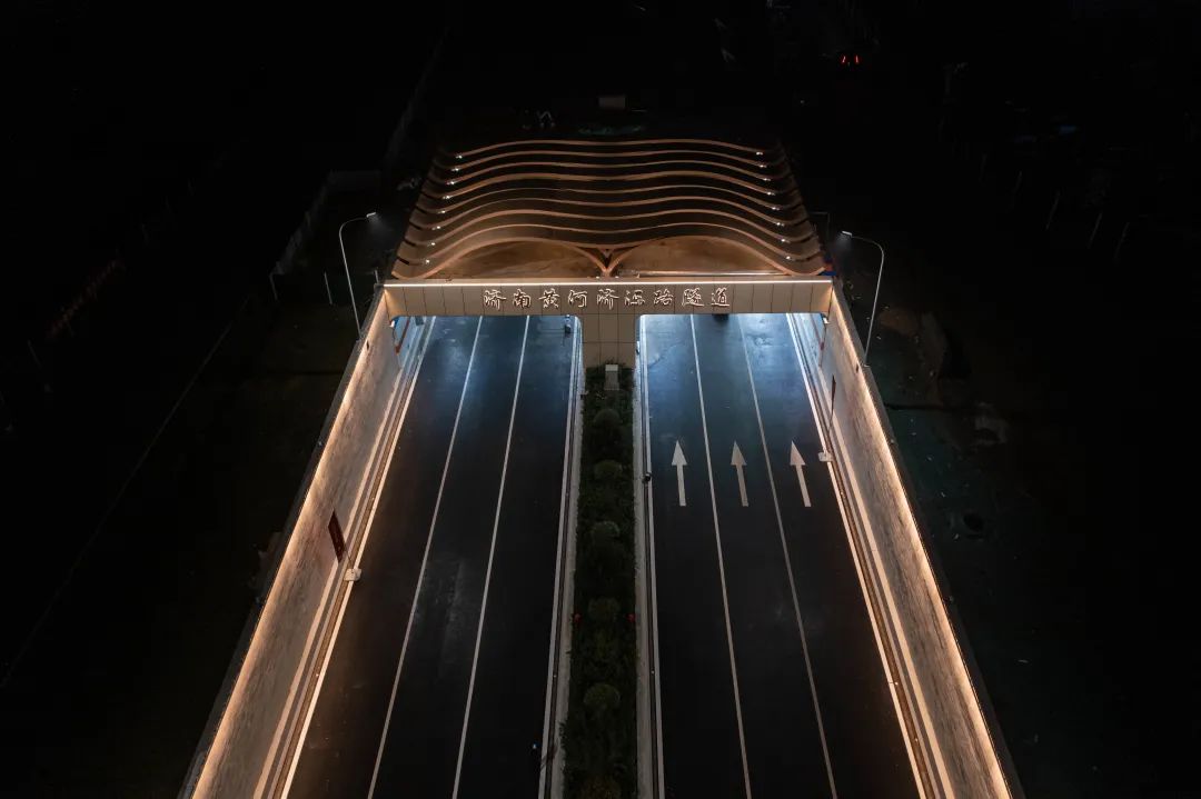 濟南黃河濟濼路隧道設計方案以黃河文化根脈為基,黃河之“光”為“場”,融合黃河歷史、文化、自然、藝術等表現黃河兩岸是我家。“黃河根脈 歲歲安瀾”主題設計定位為城河相融,動靜相融,蘊含“天人合一”的設計理念,讓黃河隧道藝術空間景觀和自然互為補充。設計中借黃河水紋傳統紋樣,將黃河文化與自然生態中的場地、色彩、光影結合,再造了黃河地形與黃河流動的自然之美,描繪了新時代黃河畫卷中詩情畫意的城市底蘊。