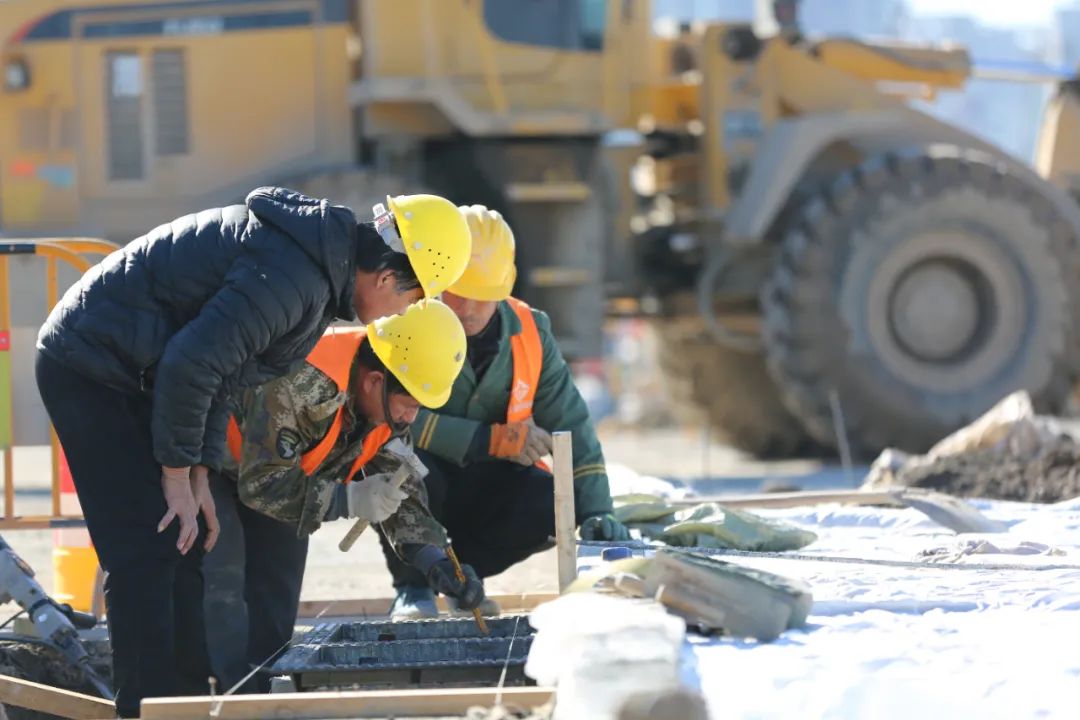 入冬以來,濟南氣溫驟降。黃河大道(一期)工程克服寒潮低溫及雨雪天氣等不利因素,落實冬期施工保障措施,晝夜奮戰,搶抓工期,施工現場熱火朝天。截至11月15日,由建設集團所屬濟南城建集團有限公司負責施工的三標段,慢車道已基本完成水穩基層與瀝青路面施工,現正加緊對路沿石與花磚進行鋪設。