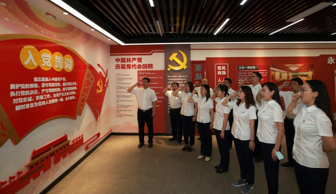 山東金宇信息科技集團黨支部與濟南市道路和橋隧服務中心黨委開展共建,組織黨員赴山東省黨史教育基地之一--濟南市萊蕪區雪野街道房干精神展館,共同開展“迎‘七一’,重溫入黨誓詞”主題黨日活動。活動現場,全體黨員面對黨旗莊嚴宣誓,重溫入黨誓詞,再憶入黨初心,堅定理想信念,強化黨性修養。