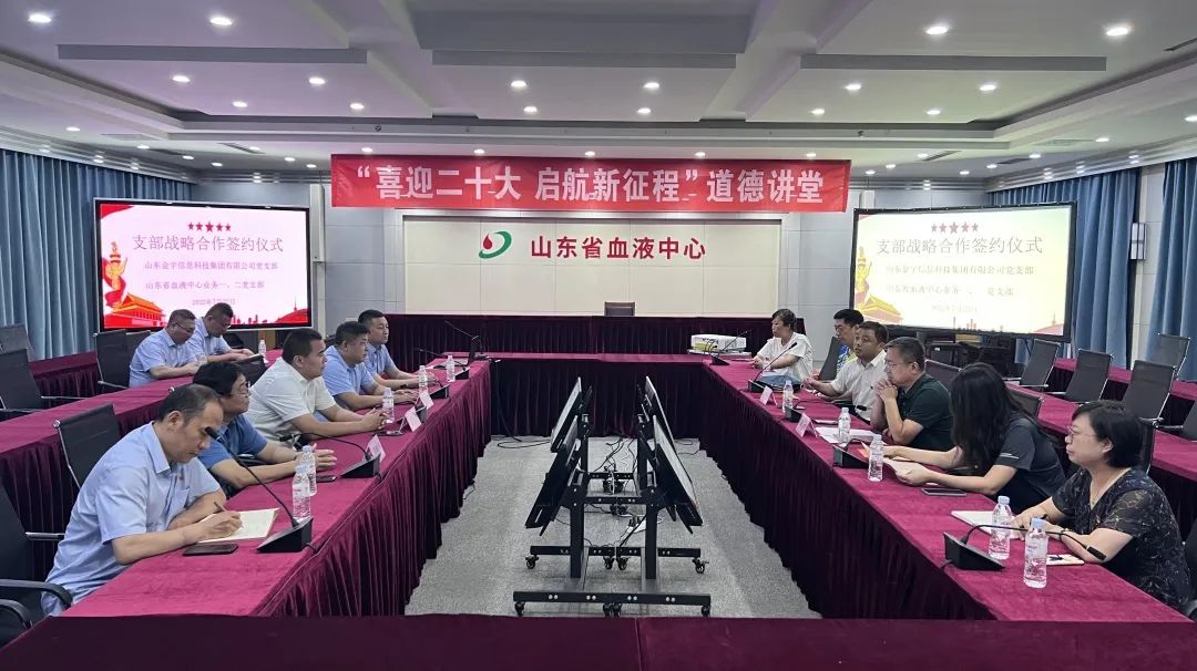 7月22日,山東金宇信息科技集團黨支部與山東省血液中心業務一、二黨支部共建合作簽約儀式在省血液中心舉行。雙方有關負責同志和黨員干部代表出席了協議簽訂活動。