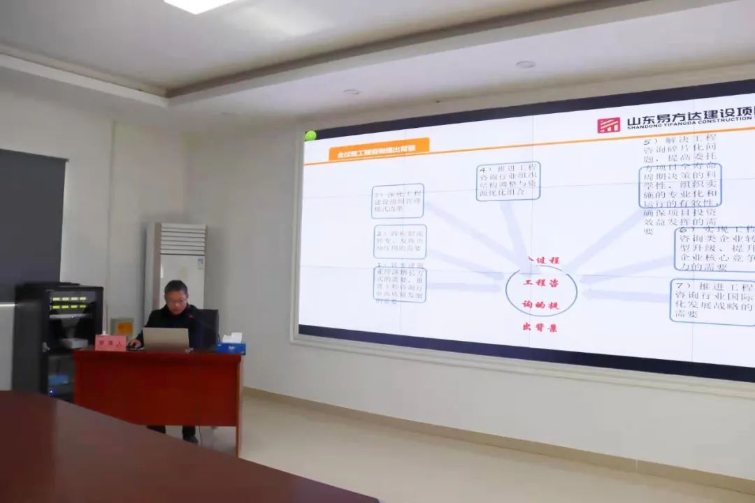 易方達建設項目管理有限公司項目經理、黃河大橋項目地面道路標段的總監理工程師、高級工程師溫建偉以《全過程工程咨詢管理經驗淺談》為題,詳細介紹了全過程咨詢提出背景及政治文件解讀、管理模式、業務難點及建議、工作方法等內容。