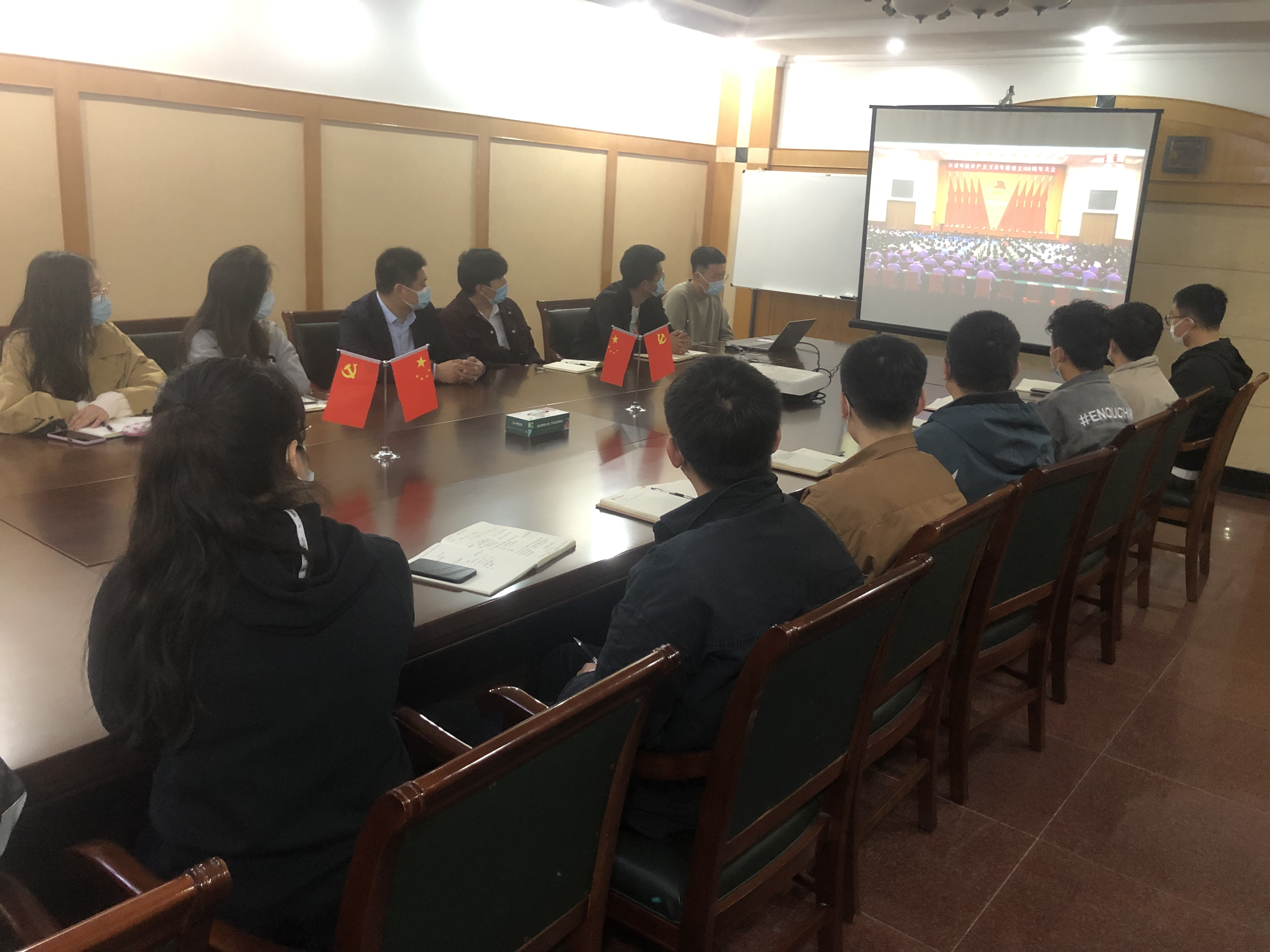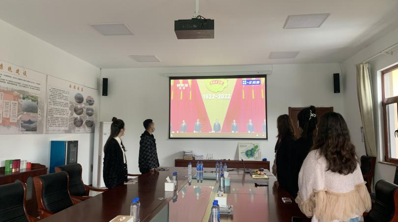 金齡健康團(tuán)支部組織青年團(tuán)員觀看中國(guó)共產(chǎn)主義青年團(tuán)成立100周年大會(huì)直播,因園區(qū)現(xiàn)處于封閉階段,此次觀看分居家辦公人員自行觀看、封閉區(qū)域團(tuán)員按照防疫要求在黨員活動(dòng)室集中觀看兩種形式進(jìn)行。