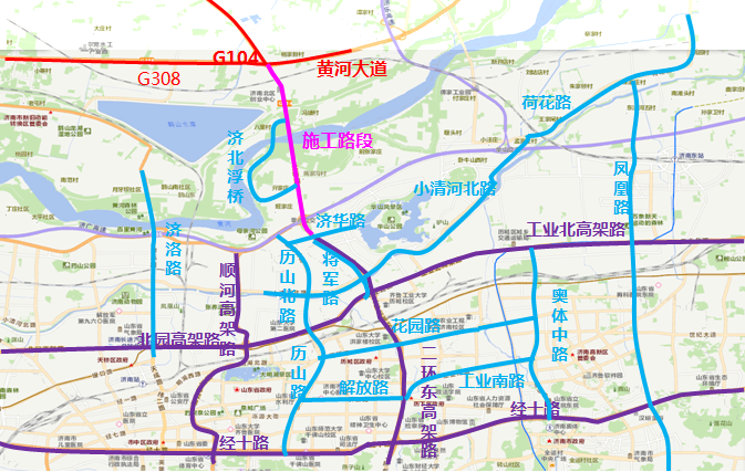 市區過路車輛可通過各城市快速路、干線道路繞行,經濟濼路隧道、濟南黃河鳳凰大橋、濟南建邦黃河大橋等道路向北跨越黃河。