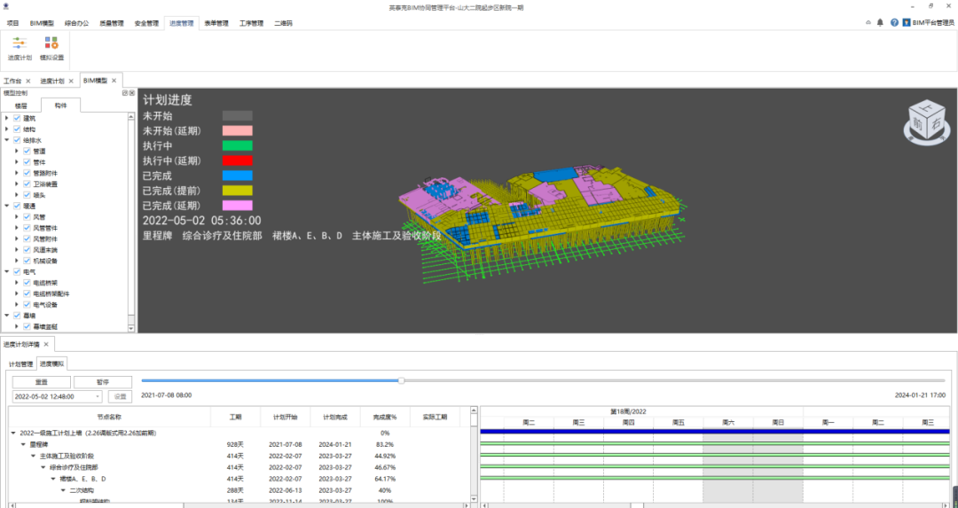結(jié)合項(xiàng)目結(jié)構(gòu)超限設(shè)計(jì)的實(shí)際,為從根本上解決因后澆帶設(shè)置過(guò)多而產(chǎn)生的進(jìn)度、質(zhì)量、安全文明問(wèn)題,論證實(shí)施了“跳倉(cāng)法”施工工藝,按“塊料規(guī)劃、塊料施工、分層澆注、整體成型”的原則施工,加大資源調(diào)配力度,在節(jié)約工期的同時(shí),實(shí)現(xiàn)文明施工、質(zhì)量控制、進(jìn)度管理有益結(jié)合。深入推進(jìn)BIM全過(guò)程管理應(yīng)用,實(shí)現(xiàn)以BIM模型為基礎(chǔ)的三維圖紙審查、碰撞檢測(cè)、凈高分析、設(shè)計(jì)方案比選、施工模型深化、管線綜合、進(jìn)度模擬、數(shù)據(jù)共享等功能,為施工方案編制論證、進(jìn)度檢查反饋、圖紙審查評(píng)價(jià)等多方面提供了多維度的強(qiáng)大支持。