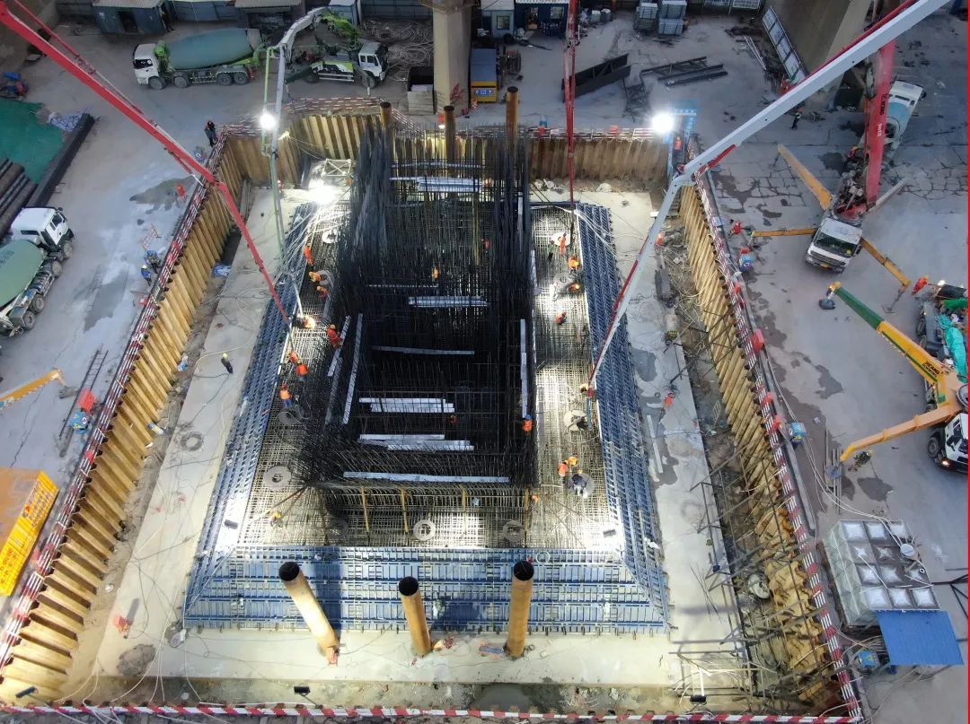 目前項目正在進行主線部分施工,100#主塔塔座及起步段混凝土澆筑完成,101#墩主塔下塔柱第一節混凝土澆筑完成。全線墩柱累計完成10座,全線承臺累計完成35座,全線樁基累計完成518顆。附屬工程施工同步進行中。