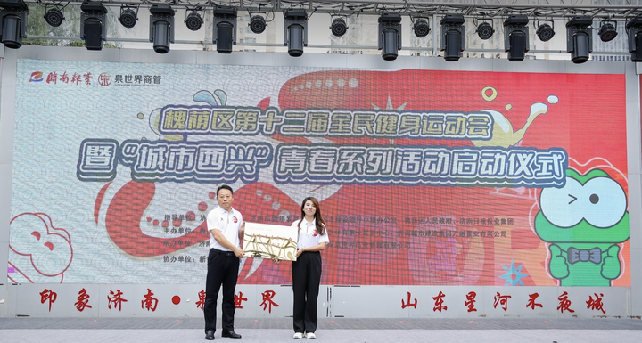 活動現場,濟南市體育局群體處處長楊本升為印象濟南·泉世界授予“濟南市青春活力示范街區”,濟南城市建設集團萬融置業有限公司與濟南日報報業集團體育事業發展中心簽署共同打造“城市西興青春系列活動”合作書。