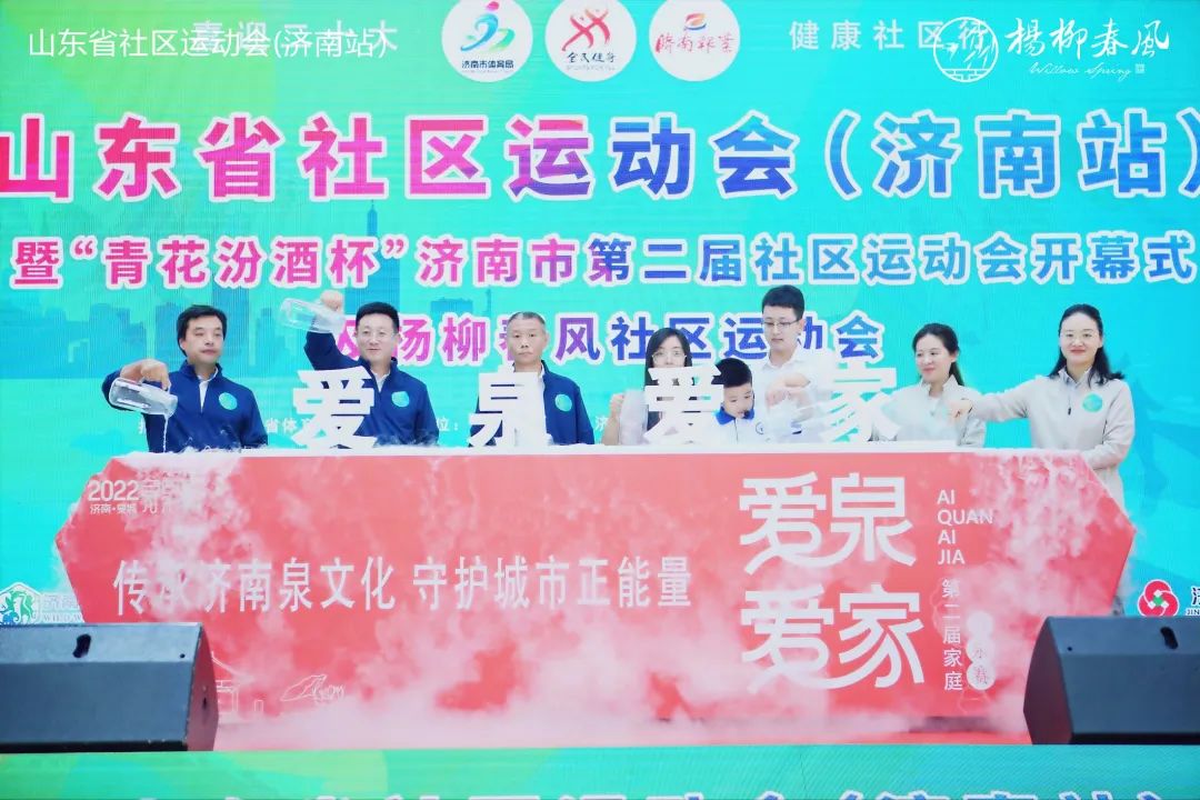 山東省體育局機關黨委副書記孫明星,濟南市體育局黨組成員、副局長張居忠,槐蔭區副區長逯明,濟南日報報業集團黨委委員、副總編輯謝魯德,濟南城市建設集團副總經理徐文東出席活動。開幕式現場,與會領導先后啟動濟南市第二屆“愛泉愛家”家庭尋泉賽、濟南市“全民健身最美社區”評選和“最美社區社會體育指導員”評選活動。開幕式后進行了楊柳春風社區運動會親子專場,夾背球、同舟共濟、袋鼠跳、齊心協力、毛毛蟲競速、投壺、夾乒乓球、跳繩、踢毽子等項目設置多樣,簡單便捷,安全性高,適合全民參與。