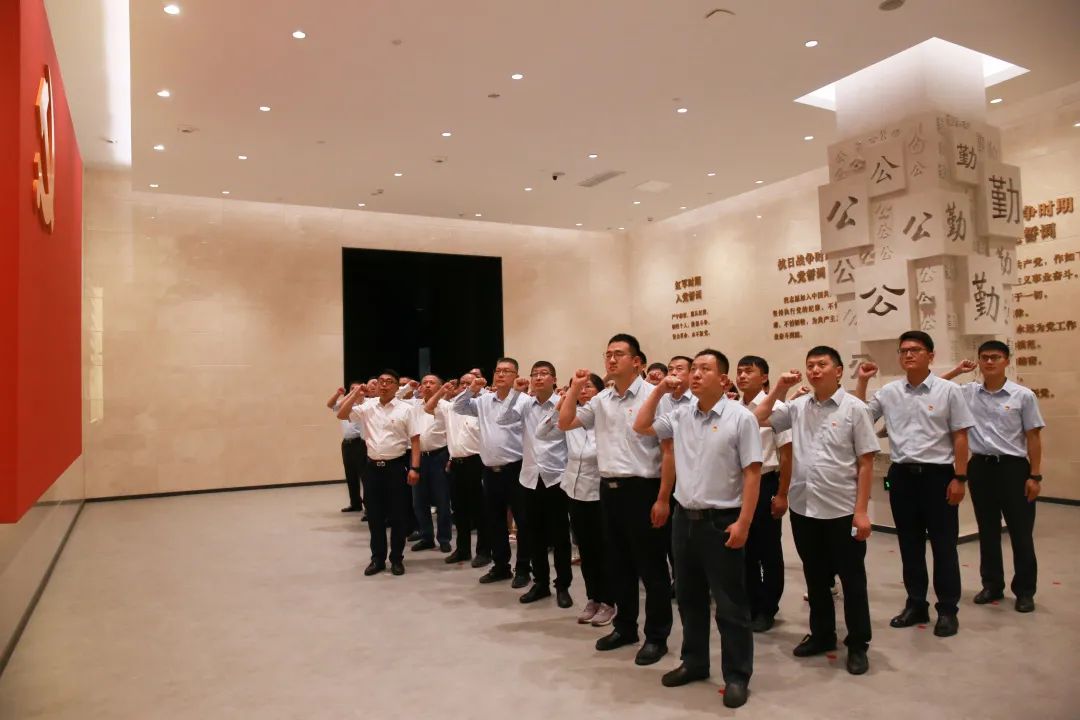 在教育館宣誓廳,面對鮮紅的黨旗,全體黨員重溫入黨誓詞并莊嚴宣誓,永遠牢記共產黨員的初心使命,始終筑牢為共產主義事業奮斗終生的堅定信念。