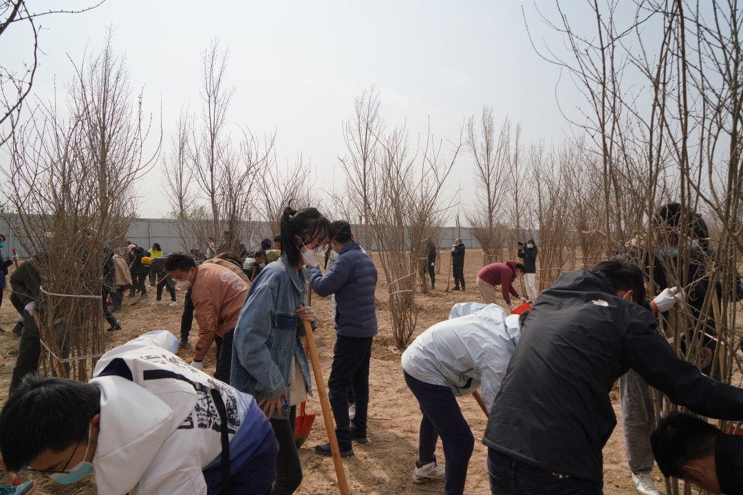 植樹活動中,大家在工作人員的指引下,密切合作、分工配合,在樹木種植范圍內,深挖基礎,厚培春壤,種下數百棵樹苗,為泉城濟南增添新綠。