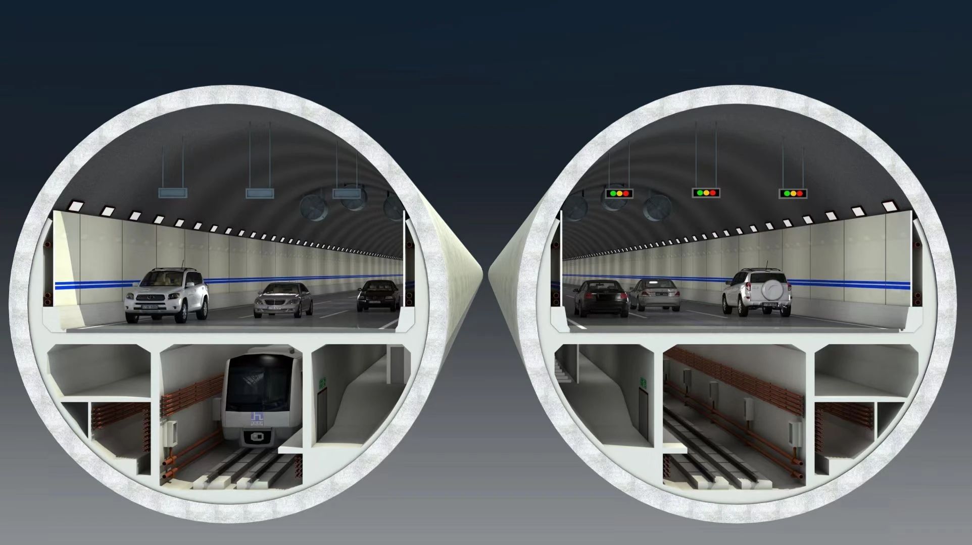 在濟南黃河濟濼路隧道行車層上,共設有34組136個廣播設備,每兩個廣播設備間隔50米;在逃生通道中,共設有8組66個廣播設備,每兩個廣播設備間隔75米;隧道中,已布設兩條信號泄漏光纜,確保三大運營商4g、5g信號無死角覆蓋和車載廣播信號全覆蓋,并在隧道應急通道內采用天線對打方式,從而實現手機無線信號覆蓋。