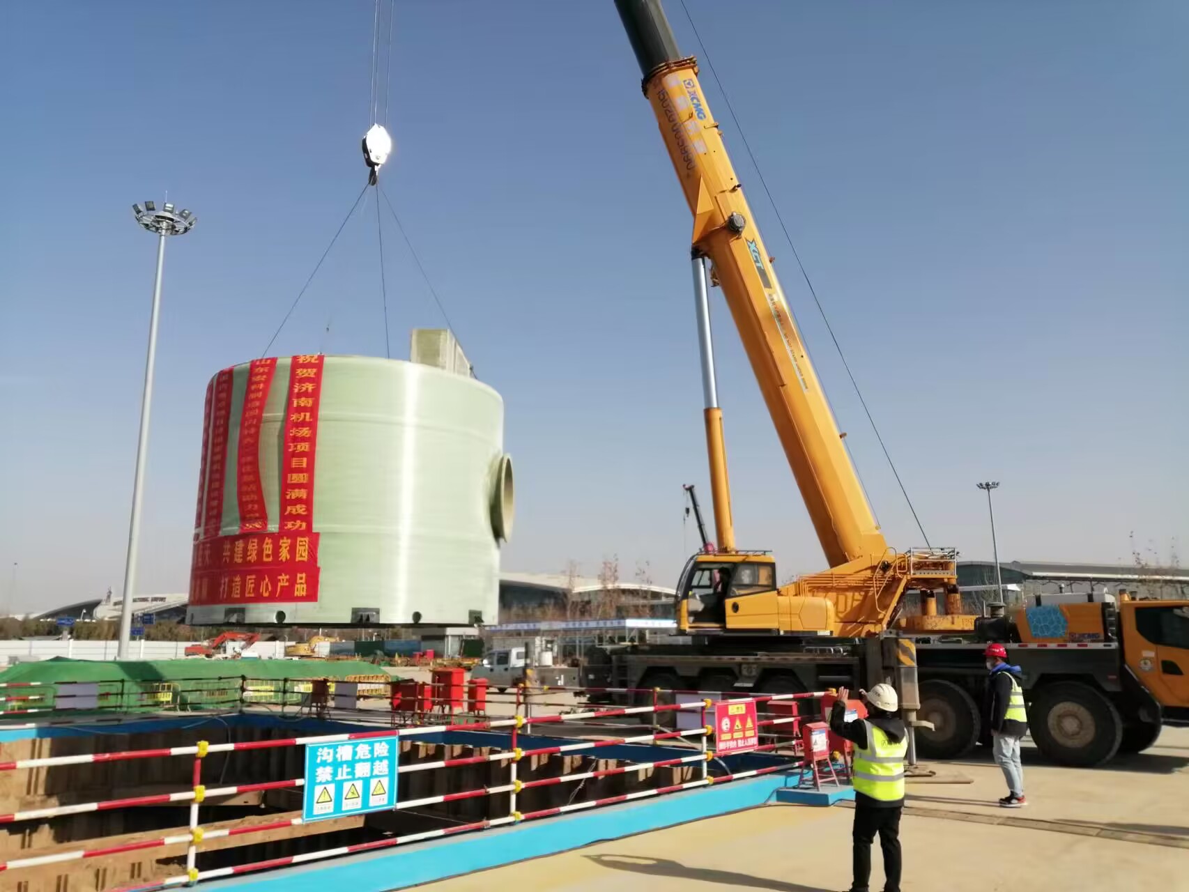 濟南城建集團公司承建部分主要施工內容包括人防工程、綜合管廊工程和導改工程,總造價3.2億元。項目建成后,集成空港、高鐵、軌道交通、高速公路、城市快速路于一體,實現“零距離換乘、無縫化銜接”,成為“國際一流、國內領先”的現代化航空港和全省最大的航空綜合交通樞紐。