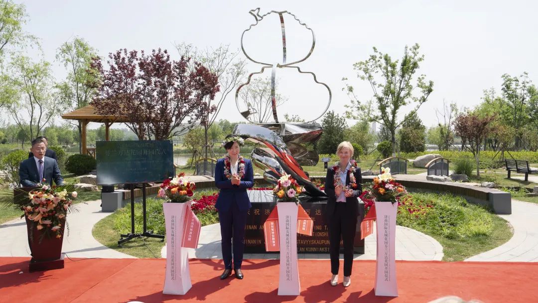 5月9日,濟南國際友城花園——芬蘭萬達友城花園在濟南舉行開園儀式。副市長楊麗與芬蘭駐華大使孟藍共同為芬蘭萬達國際友城花園開園剪彩。