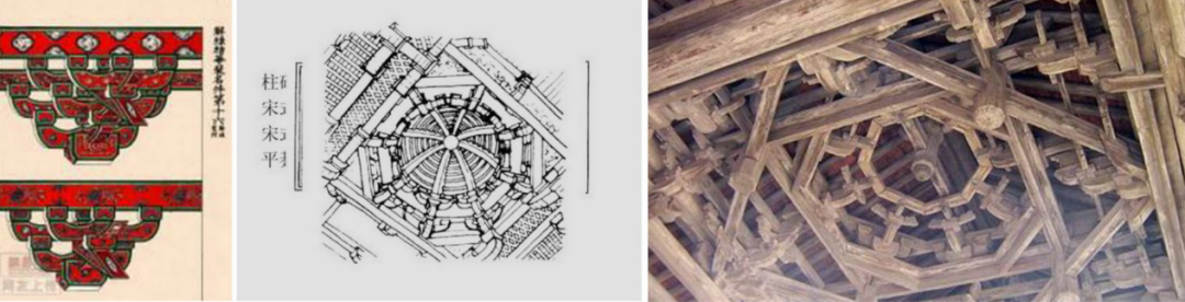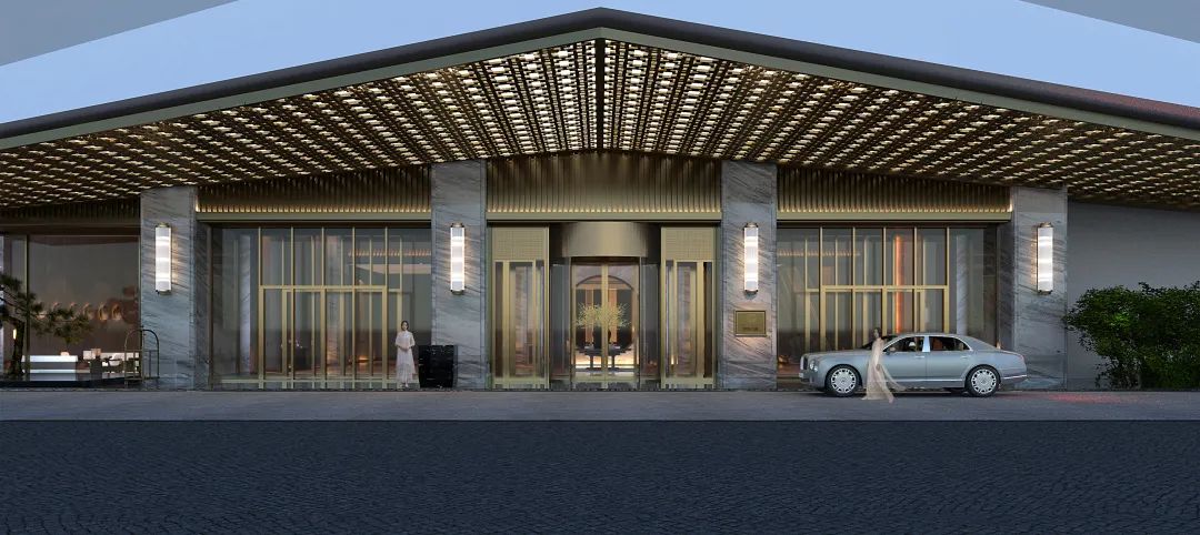 宴會廳天花的設計借鑒宋式屋架結構,通過現代設計手法進行簡化概括形成符合現代人審美的造型裝置藝術。
