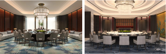 項目將宋代雅致美學融入酒店裝飾設計,分別賦予前廳、餐飲區、宴會廳以“云起”“云深”“云上”“云歸”之意,復刻世人追慕的宋人閑雅生活。