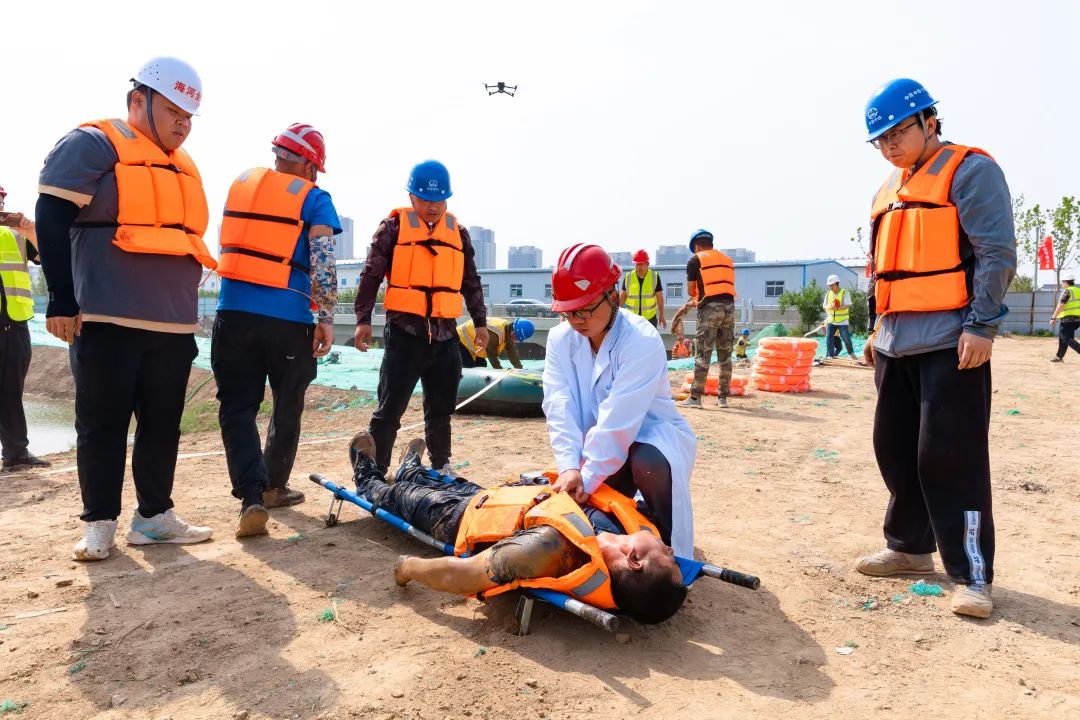 本次防汛搶險演練模擬遇到暴雨天氣,發生人員落水、水位上漲過快等危險情況時的應急處置工作流程,設置險情上報、救生艇救援、醫療救護、緊急排水等環節,演練過程中,各小組嚴格按照流程開展工作,充分展現出了現場緊急處理能力和團隊協作精神。