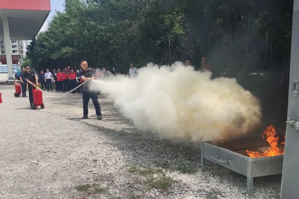 本次演練項目重點針對加油站現場加油機及車輛著火、加油容器著火開展,濱河石化總經理講解了加油站消防安全注意事項、初始火災處置要求、突發火災快速響應機制等消防知識要點,詳細演示滅火器、滅火毯等加油站常用消防器材的使用方法。