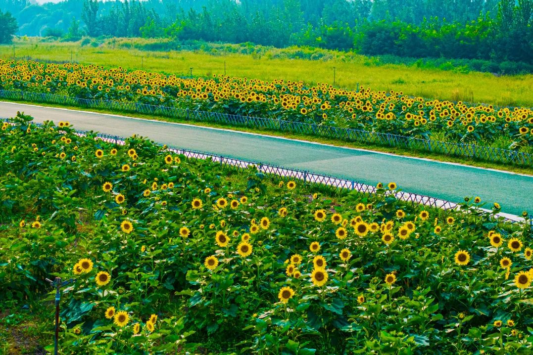 該片花海為黃河生態(tài)廊道防護(hù)林及苗圃工程項(xiàng)目一期淤背區(qū)農(nóng)作物,項(xiàng)目由建設(shè)集團(tuán)工程二部受起步區(qū)管委會(huì)委托建設(shè),集團(tuán)所屬濟(jì)西農(nóng)業(yè)公司具體施工種植。自2021年起,濟(jì)西農(nóng)業(yè)創(chuàng)新傳統(tǒng)作物種植模式,連續(xù)2年采用“油菜花+油葵”套種模式,打造起步區(qū)黃河北生態(tài)走廊示范段生態(tài)工程景觀,力爭(zhēng)“一栽一片、一綠一景”。該片花海不僅有“顏值”,還帶動(dòng)產(chǎn)生了良好的經(jīng)濟(jì)效益與社會(huì)效益,成為黃河北一道靚麗的風(fēng)景線。