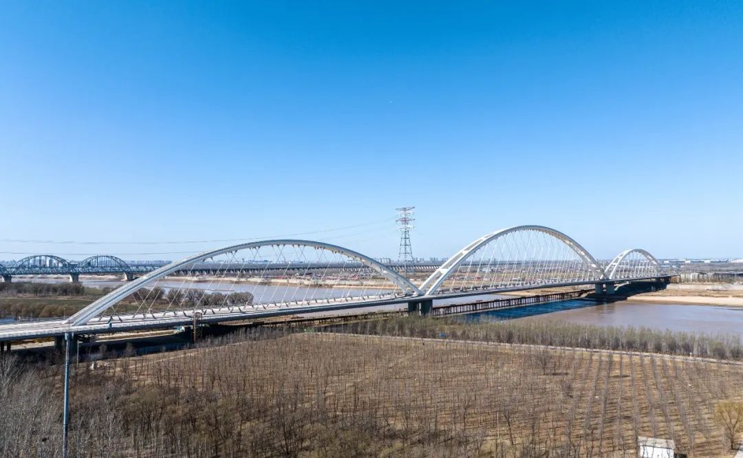 濟南黃河齊魯大橋位于濟南市槐蔭區、天橋區,路線南起齊魯大道與濟齊路交叉口,接現狀齊魯大道,依次跨越美里路、北太平河北路、濟廣高速,經過鄭家店村東,跨越黃河后,終點位于G309交叉處。項目全長6742米,按照雙向八車道一級公路標準建設,兼顧城市主干路功能,設計速度60公里/小時,主橋范圍為公軌合建的橋梁形式,中間預留城市軌道交通空間。主橋采用網狀吊桿系桿拱橋,主跨420米,工程建成后將成為同類橋型跨徑世界第一。