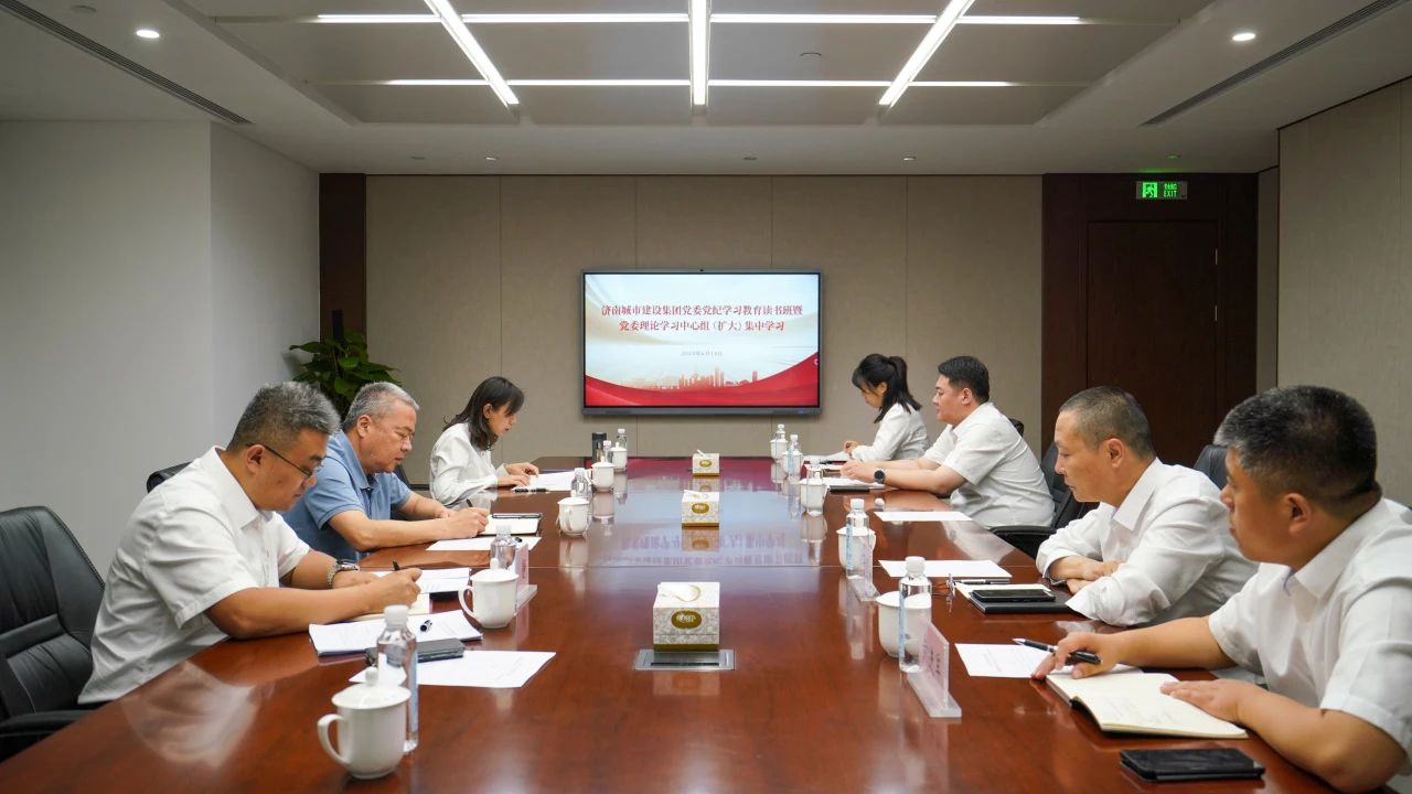 6月14日,濟南城市建設集團召開黨紀學習教育讀書班暨黨委理論學習中心組(擴大)學習會,建設集團黨委書記、董事長許為民主持會議并講話,集團黨委副書記、總經理楊峰,集團領導班子成員,集團外部董事,集團直屬黨組織書記,集團總部中層干部參加學習。