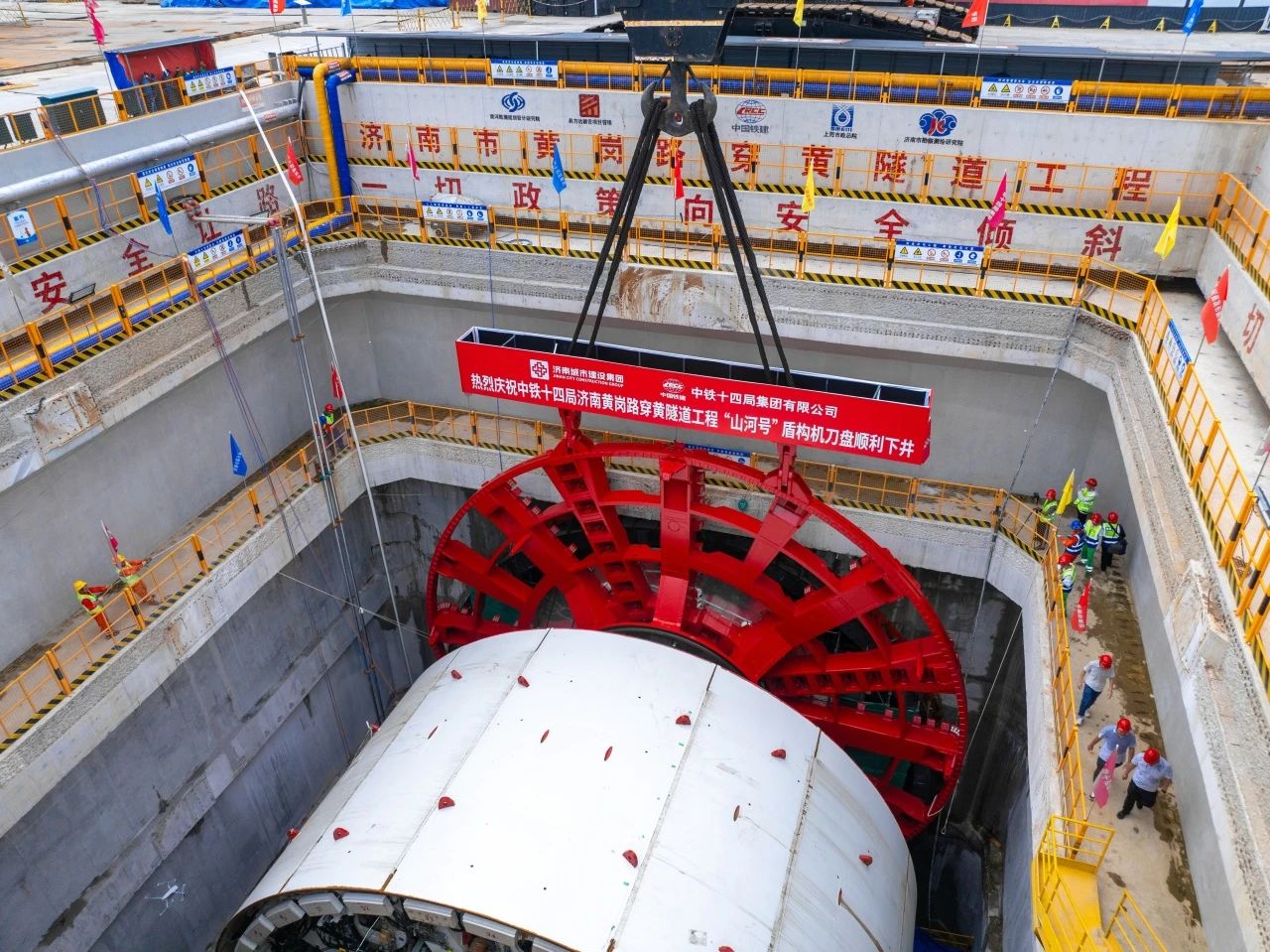 7月24日,由濟南城市建設集團投資建設,中鐵十四局集團承建的濟南市黃崗路穿黃隧道迎來關鍵節(jié)點,“山河號”盾構機刀盤吊裝下井,進入始發(fā)井預定位置,標志著世界最大直徑水下隧道盾構始發(fā)進入“倒計時”。