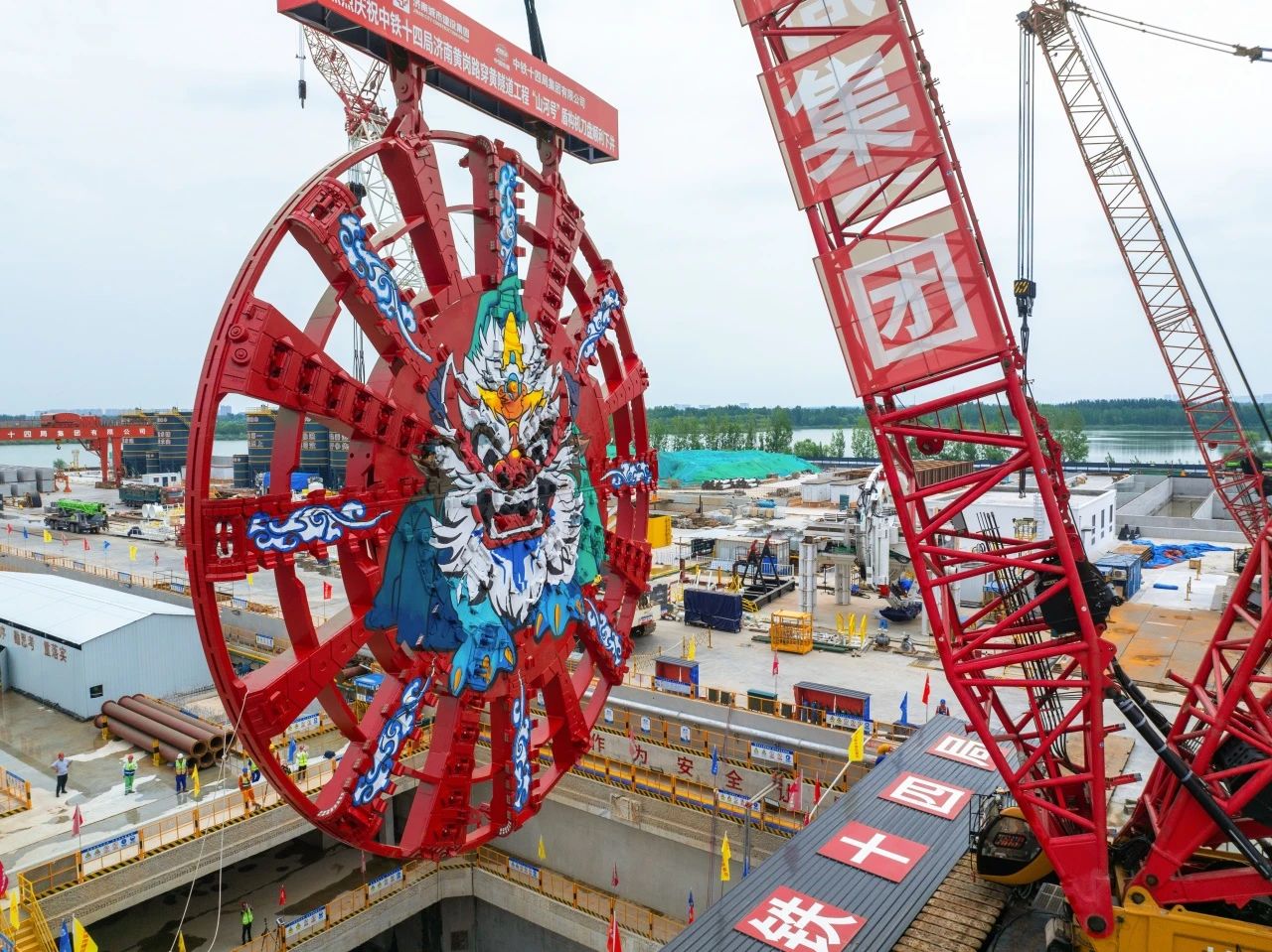 自今年5月19日“山河號”盾構機在濟南驗收下線后,歷時3天完成拆解;5月24日,盾構機首塊順利運輸至濟南市黃崗路穿黃隧道施工現(xiàn)場;5月27日,直徑9.5米、重達195噸的刀盤中心塊也順利抵達;6月11日,重510噸,長約30米的盾構機首件——一號臺車成功吊裝下井,正式拉開世界最大直徑泥水平衡盾構機下井組裝的序幕;7月12日,盾構機主驅(qū)動及四號臺車同時順利下井。