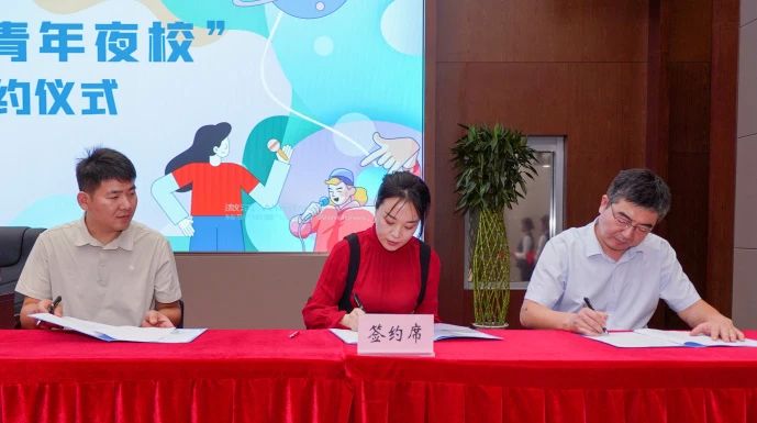 許洪波、任立先為建設集團青年之家揭牌;團市委組織部相關負責同志、建設資產公司負責同志、青年夜校建設集團校區負責同志共同簽訂《濟南團市委“青年之家·青年夜校”項目運營協議》;與會領導為“青年之家·青年夜校”6名授課教師代表發放聘書。
